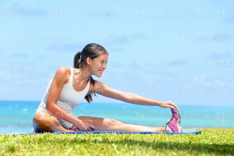 Женщина делает растяжку ног