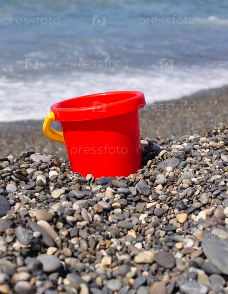 Красное ведерко на берегу моря