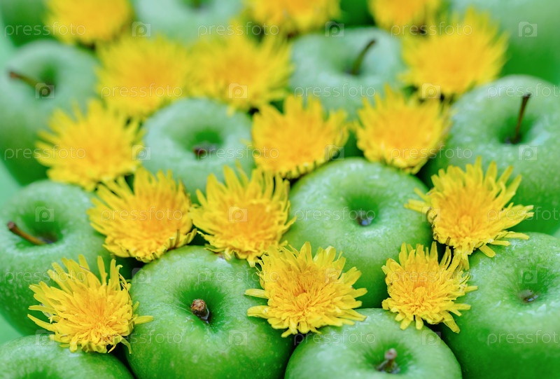 Зеленые яблоки и одуванчики