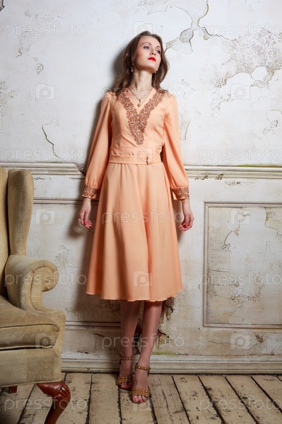 Девушка стоит возле кресла