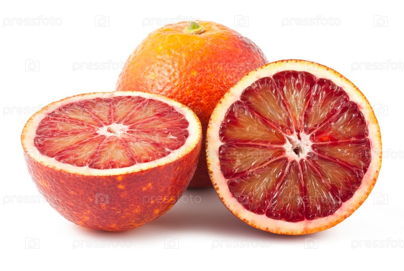 Красные апельсины на белом фоне
