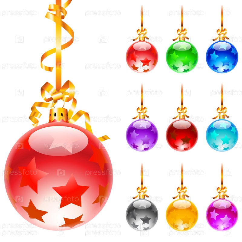Иллюстрация с разноцветными рождественскими украшениями