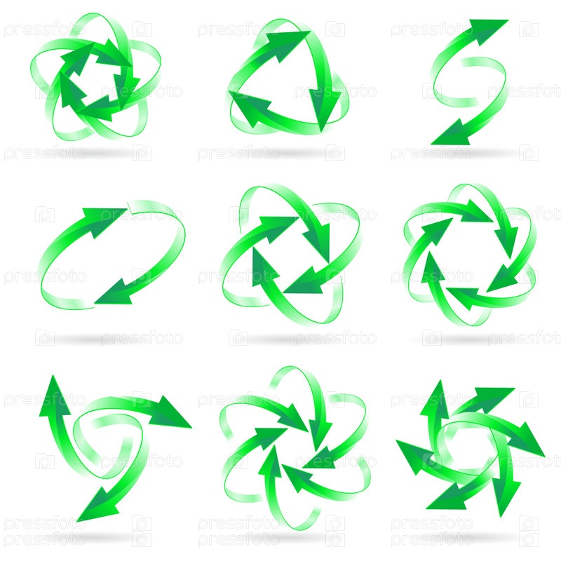 Коллаж из зеленых стрелок на белом фоне