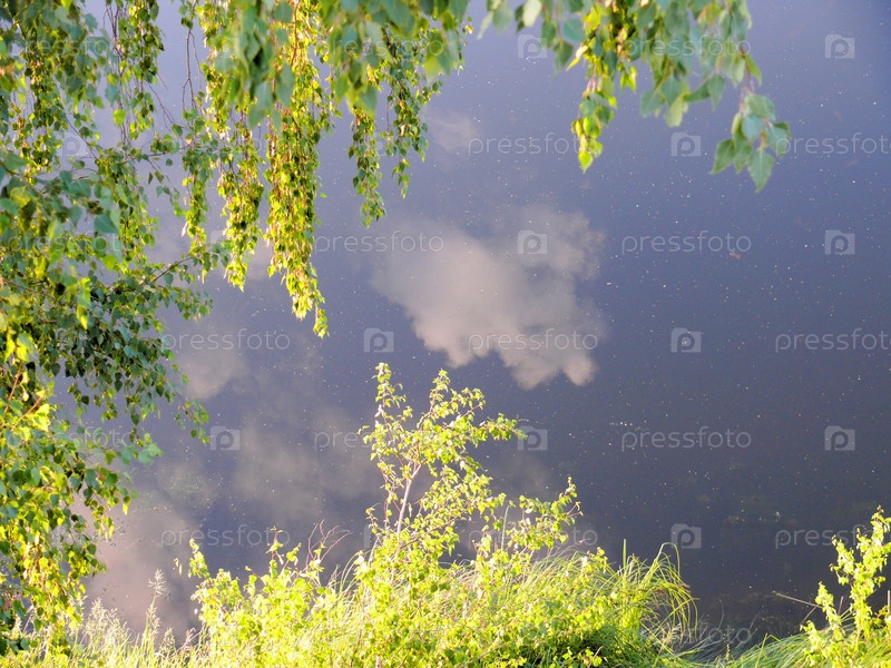 Зеленые листья над озером
