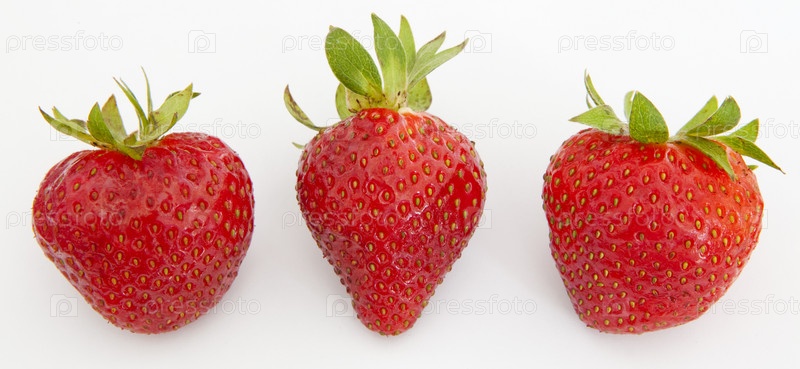 Три ягоды клубники на белом фоне