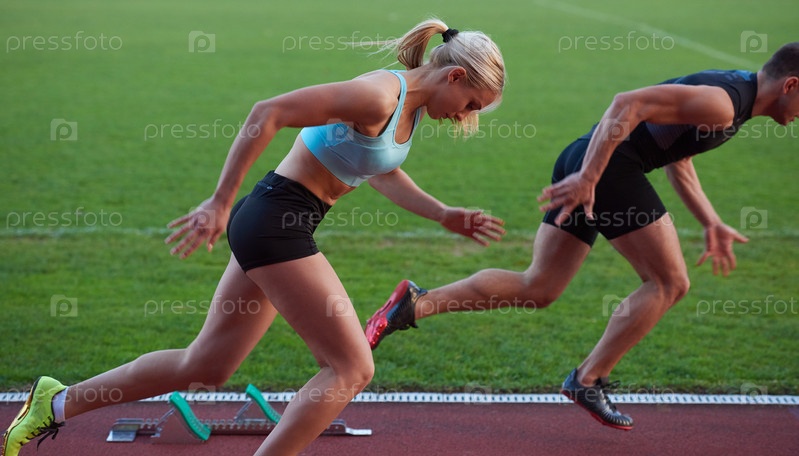 Спортсмены на беговой дорожке