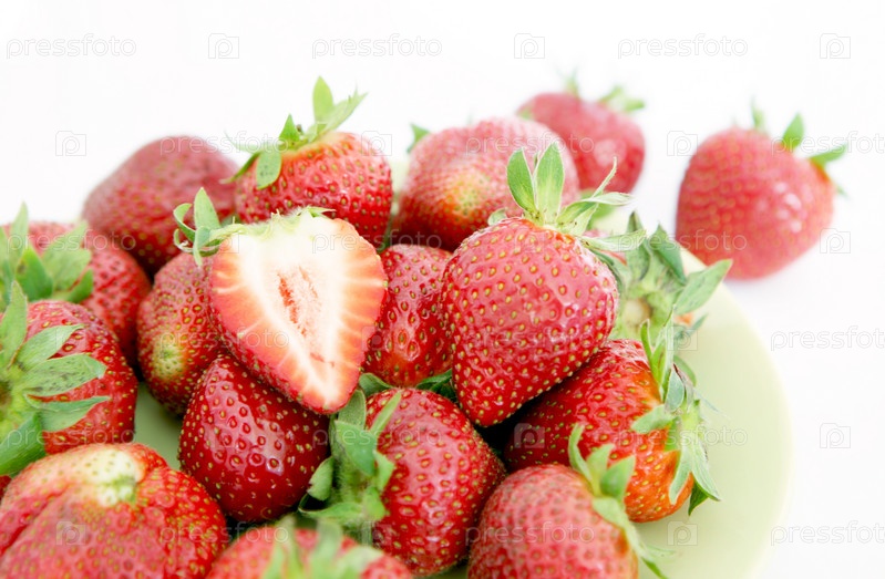 Спелая клубника на белом фоне