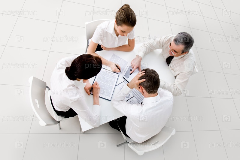 Вид сверху бизнес-рабочая группа думает о новом проекте на встрече