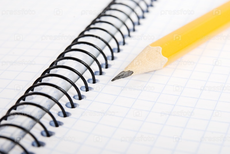 Тетрадь с карандашом крупным планом