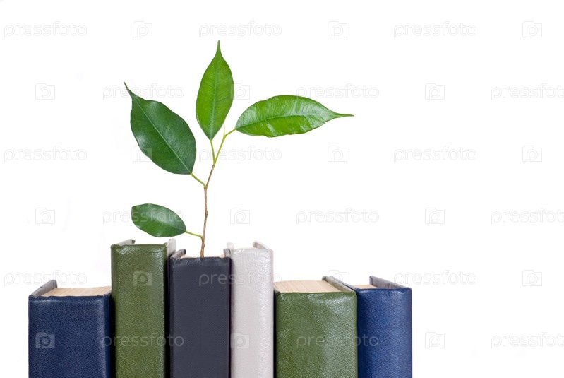 Книги с зеленой веточкой на белом фоне