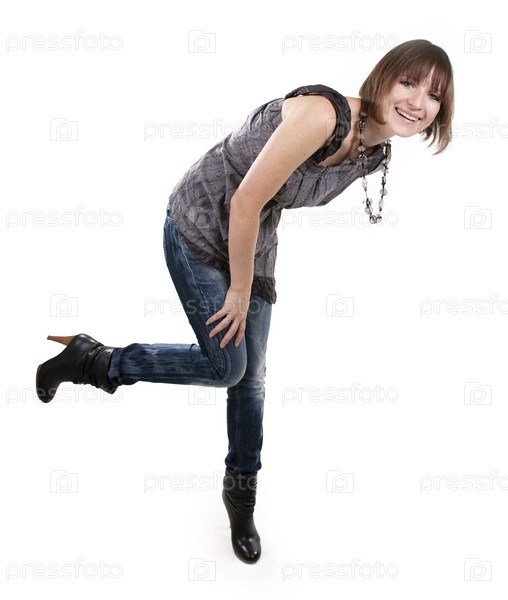 Красивая девушка в повседневной одежде на белом фоне