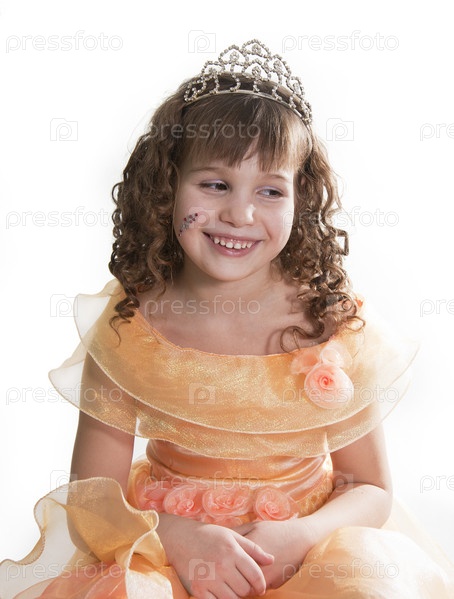 Принцесса в оранжевом платье на белом фоне