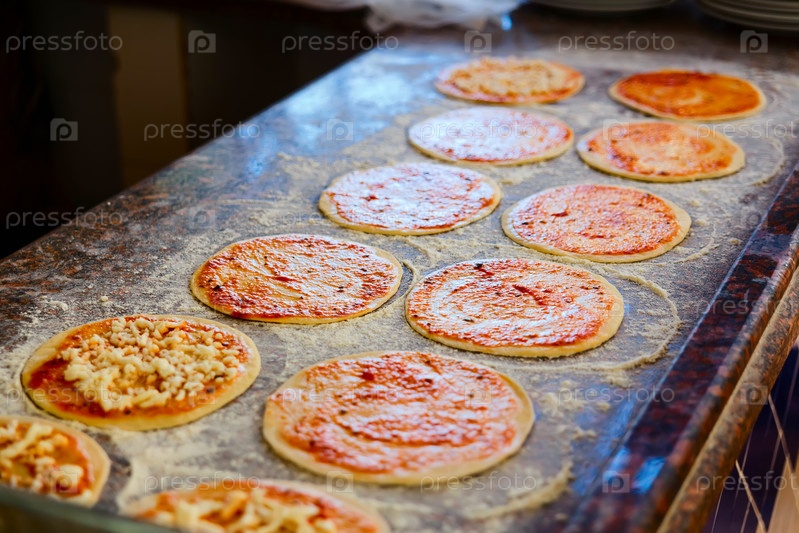 Добавление томатного соуса на пиццы