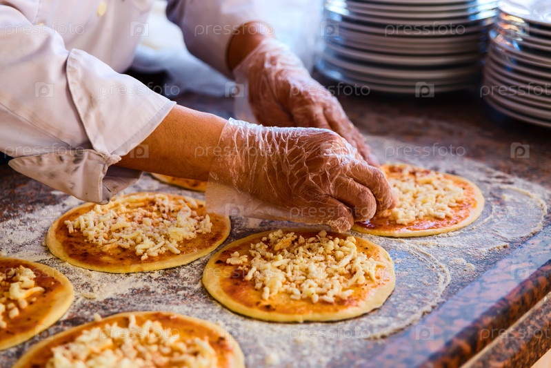 Добавление томатного соуса на пиццы
