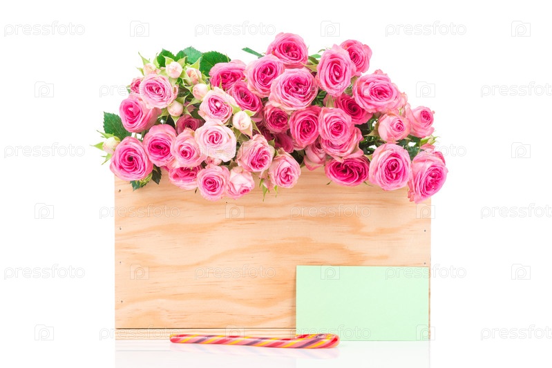 Розы в ящике на белом фоне