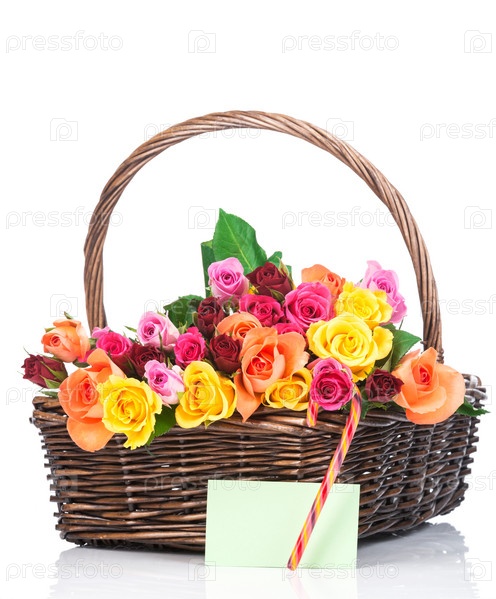 Розы в корзине на белом фоне