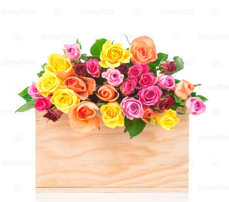 Розы в ящике на белом фоне