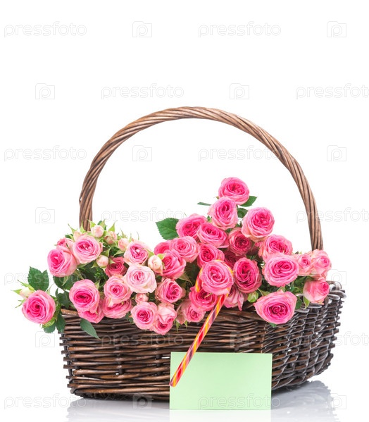 Розы в корзине на белом фоне
