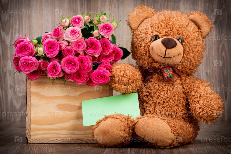 Розы и плюшевый мишка