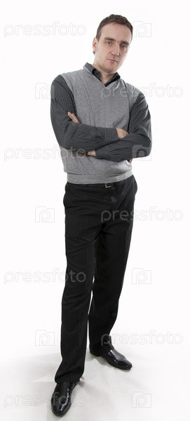 Серьезный мужчина в деловой одежде на белом фоне