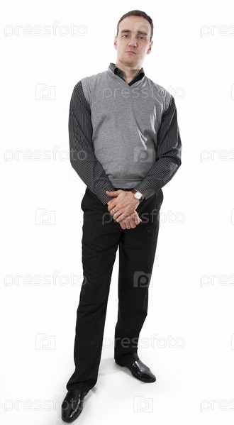 Серьезный мужчина в деловой одежде на белом фоне