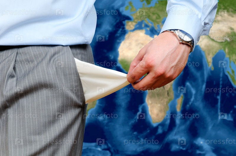 Человек вытаскивает пустой карман