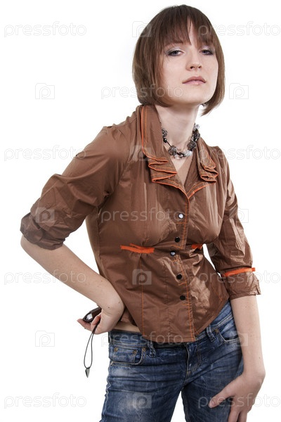 Красивая девушка в повседневной одежде на белом фоне