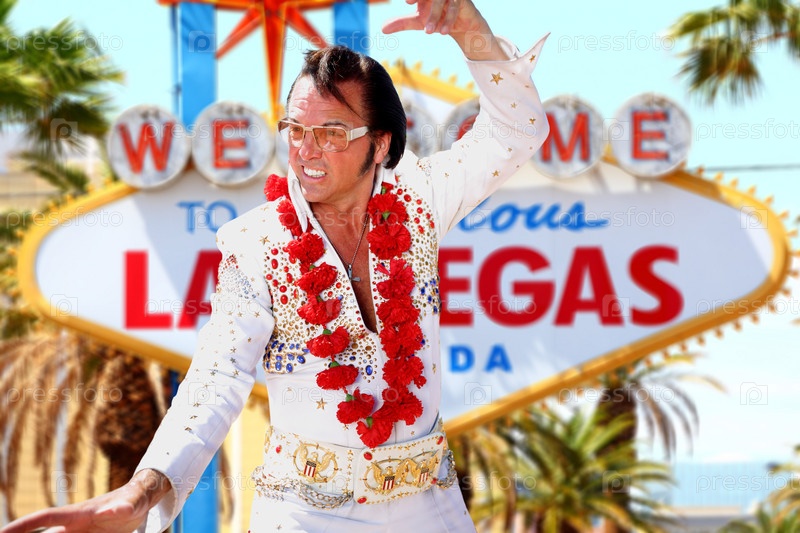 Двойник Элвиса Пресли и знак Лас-Вегас