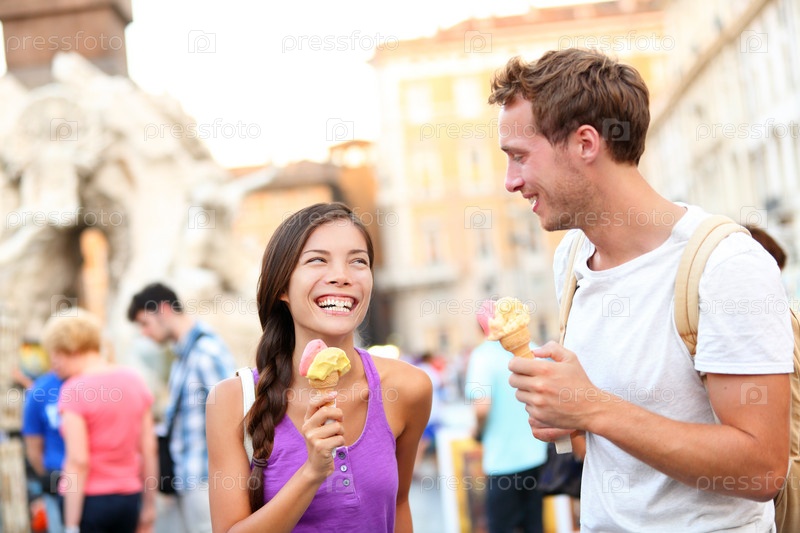 Пара ест мороженое в Риме