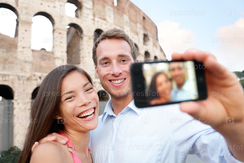 Счастливые туристы в Риме