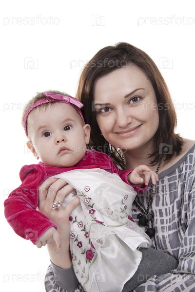 Счастливая мама с дочкой на белом фоне