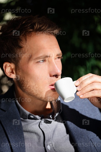 Мужчина пьет кофе в кафе
