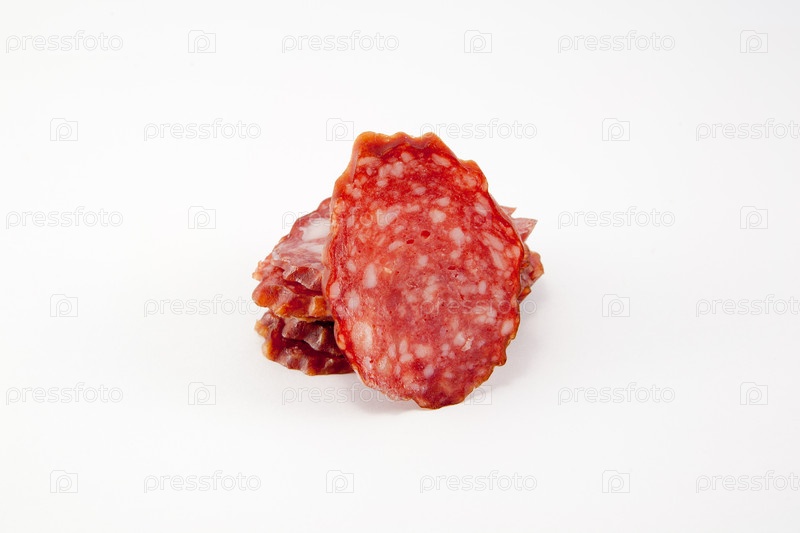 Изолированные ломтики салями