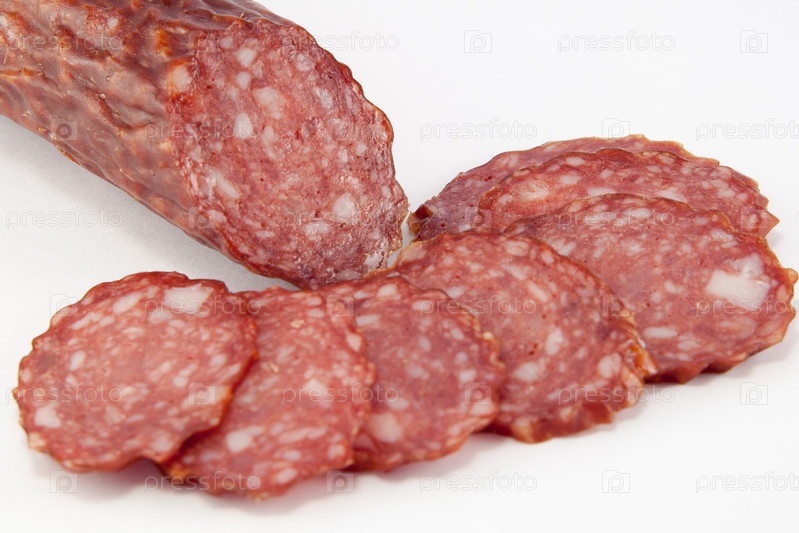 Изолированные ломтики салями