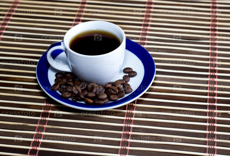 чашка кофе с зернами кофе
