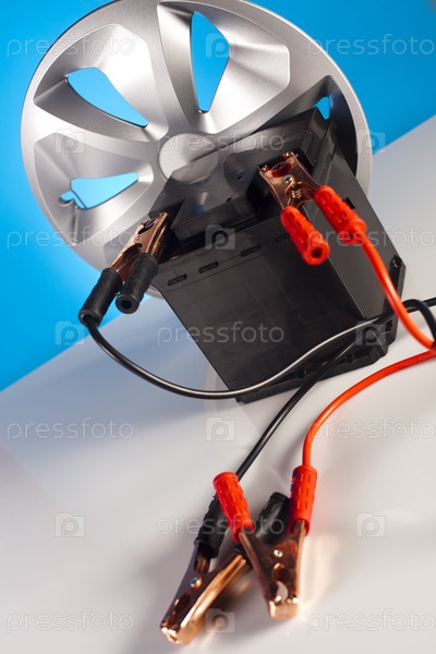 Автомобильный аккумулятор с двумя соединительными кабелями