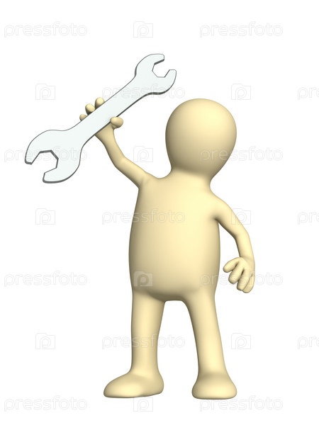 Человек - слесарь с гаечным ключом