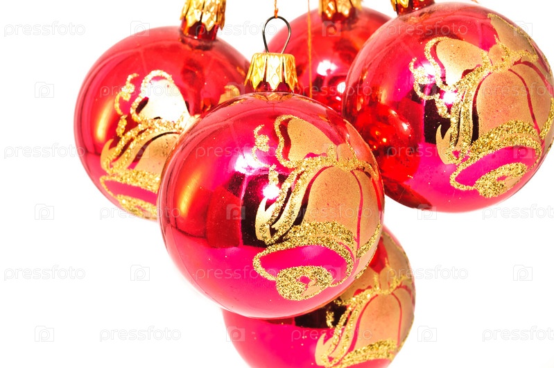 Елочные украшения, изолированы на белом фоне