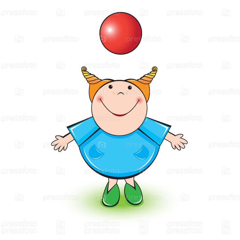 Маленькая девочка играет с красным мячом