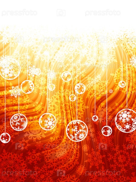 Яркий новогодний фон со снежинками и шарами