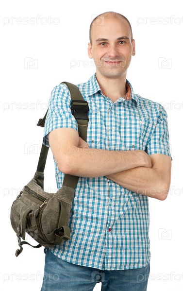 Мужчина с сумкой на белом фоне