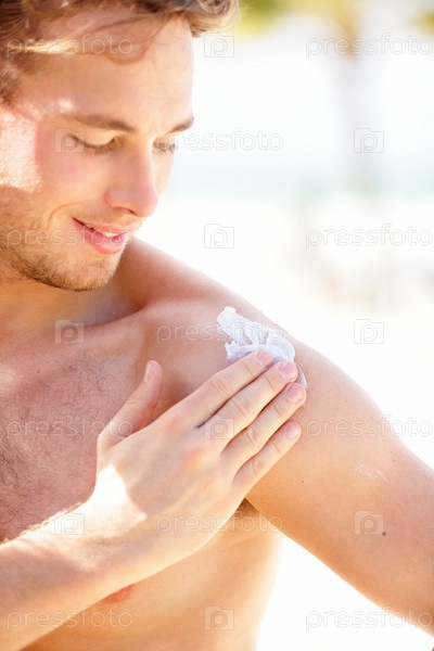 Мужчина наносит солнцезащитный крем