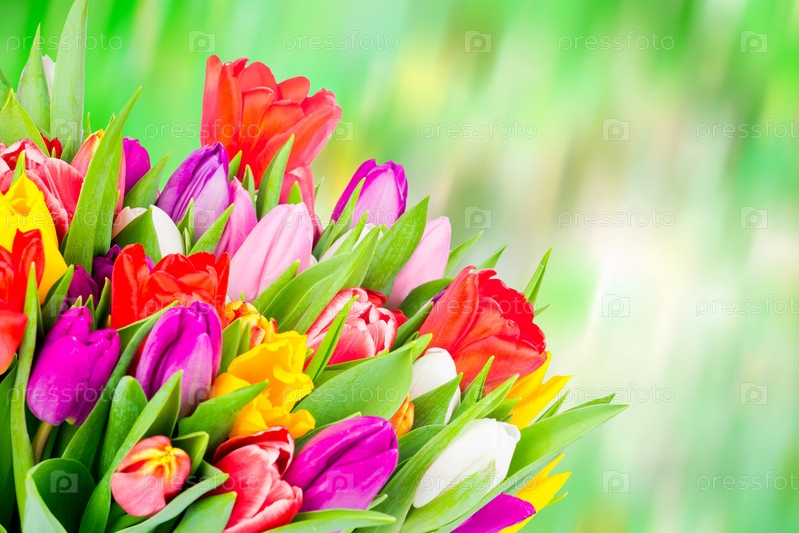 Тюльпаны на цветном фоне