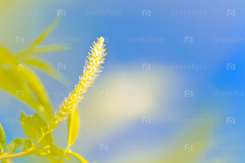 Желтые цветы на фоне голубого неба. Крупный план