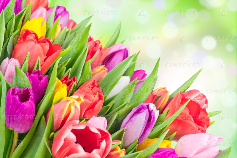 Тюльпаны на цветном фоне