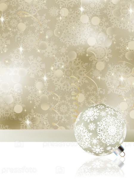 Нежный новогодний фон со снежинками и елочным шаром