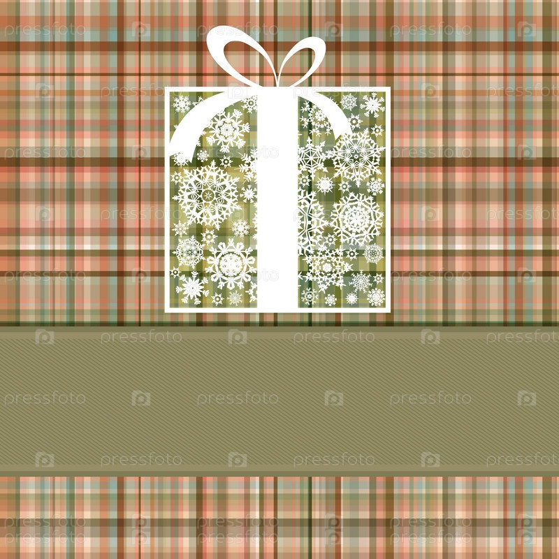 Рождественский подарок в коробке на клетчатом фоне