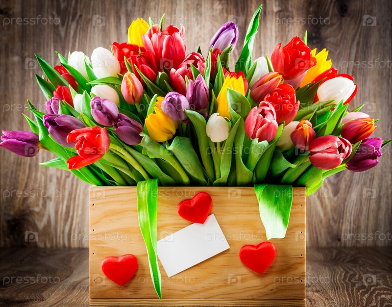 Тюльпаны на деревянном фоне