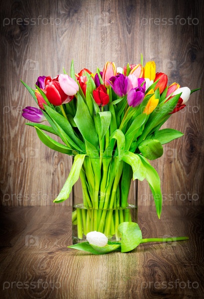 Тюльпаны на деревянном фоне
