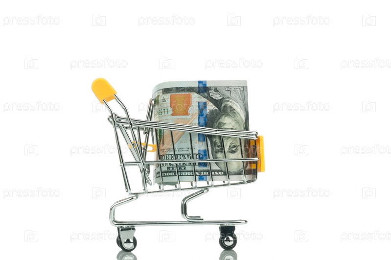 Тележка с деньгами на белом фоне